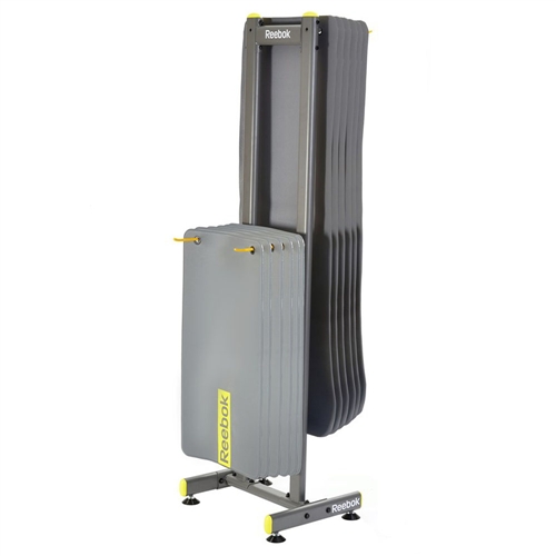 Horizontální stojan na 30 podložek REEBOK Professional jednoduše šetří prostor pro Vaše fitness studia. Jedná se o stabilní stojan s rozměry 60 x 65 x 211 cm ze série Professional, která je orientována především na potřeby fitness studí a posiloven.
