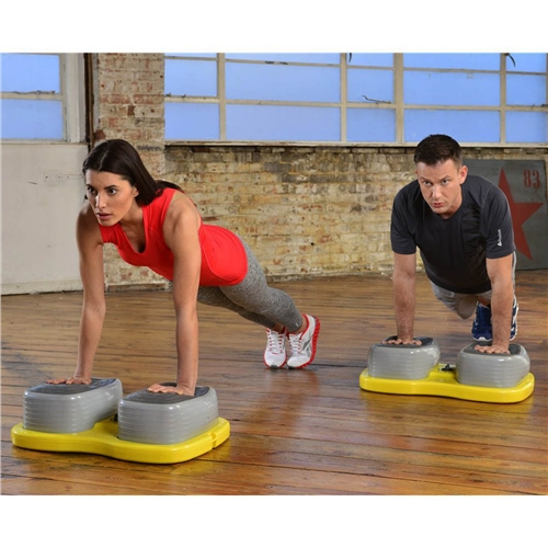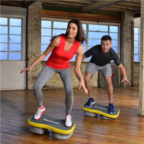 Balanční deska REEBOK Easy Tone Step pro balanční a koordinační trénink ve fitness studiu. Stupínek obsahuje dva vzájemně propojené vzduchové polštáře, které jsou navrženy tak, aby během cvičení nutily tělo ke zpevnění. Polštáře jsou nestabilní a díky tomu se cvičení vlastní vahou stává hodně náročné a pomáhá formovat celé tělo. Stupínky lze použít oběma směry, díky tomu získáváte možnost procvičit jak horní, tak spodní část těla. Rozměry : 65 x 41 x 17 cm
