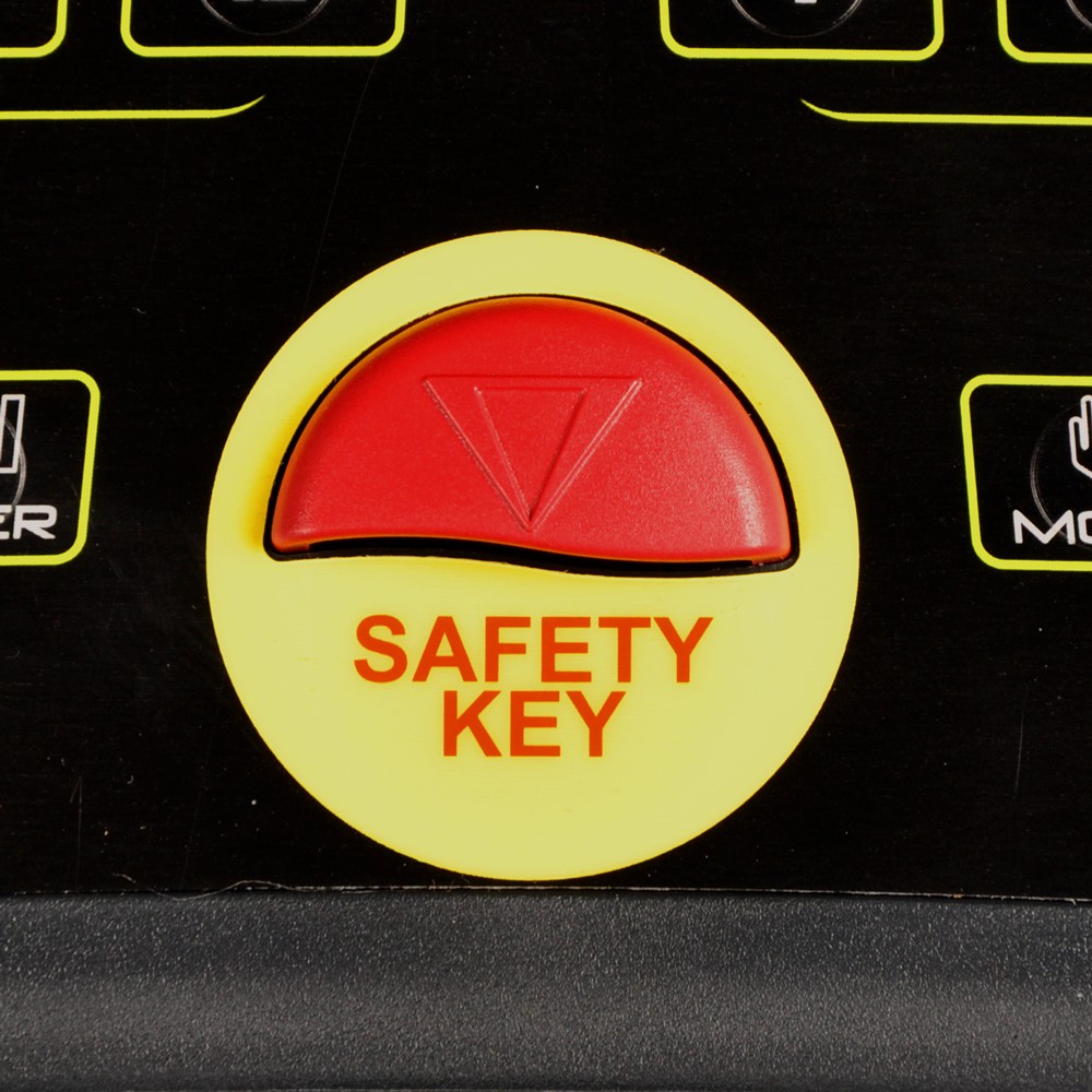 -velké bezpečnostní tlačítko pro okamžité vypnutí pásu v případě nebezpečí