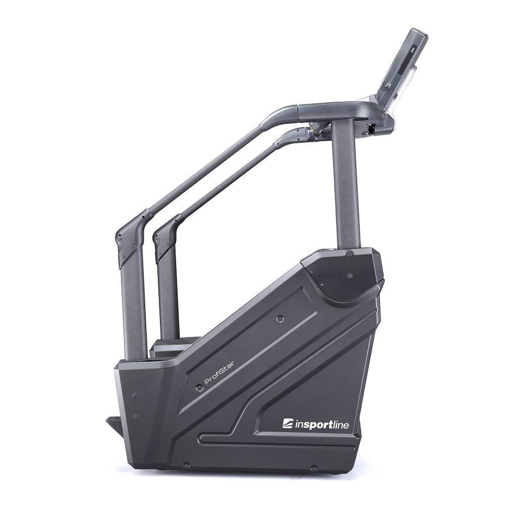 Fitness schody inSPORTline ProfiStair představují profesionální kardio zařízení pro posílení a tvarování stehen a hýždí. Zároveň slouží i k výraznému zlepšení kondice. Tato alternativa stacionárního stepperu se vyznačuje velmi vysokou robustností a odolností, především kvůli zpevněnému rámu a celkové hmotnosti 231 kg. Spolehlivý AC motor zajišťuje bezproblémový chod a dlouhou životnost. Díky tomu hravě zvládne nepřetržitou zátěž s uživateli do hmotnosti až 180 kg. O bezpečnost se starají postranní madla po celé délce trenažeru, bezpečnostní brzda a protiskluzová úprava samotných schodů. Systém aretačních šroubů pro vyrovnání nerovností podlahy, dva stojany na lahev, 4 transportní kolečka, knižní či tabletový stojánek a větrák jsou samozřejmou součástí. Veškerá nastavení včetně rychlosti jsou řízena elektronicky. Rychlost schodů je udávána v počtu schodů za minutu a pohybuje se od 20 do 140 schodů/min. Uživatel si přitom může vybrat z 20 úrovní zátěže. Výška jednoho schodu činí pevných 19 cm, šířka 53 cm a hloubka dostatečných 24,6 cm.
