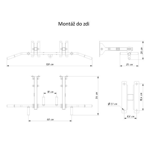 •Hrazda k tréningu zad, ramen, bicepsů, tricepsů, hrudníku a břicha