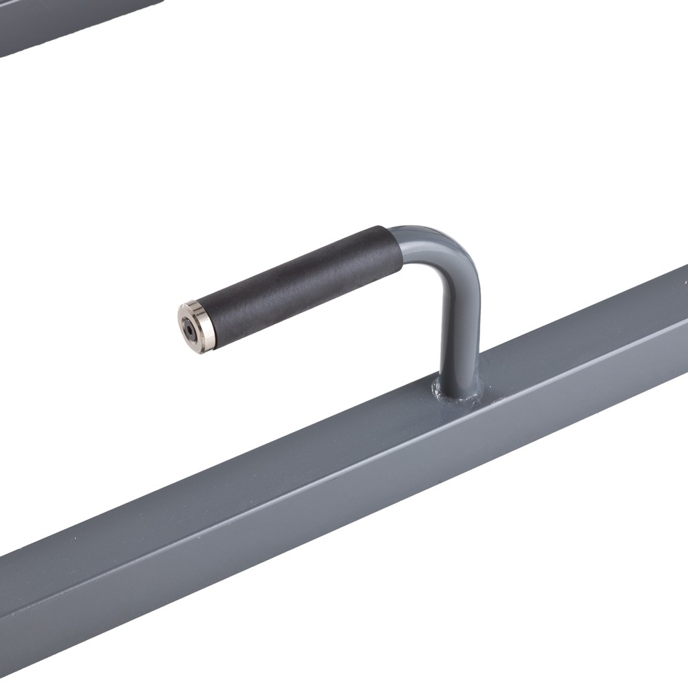 Vysoká stabilita, odolná konstrukce, propracované detaily, multifunkční horní hrazda, opěrné body pro sed leh, protiskluzové úchopy, měkké polstrování, anatomická opěrka zad.