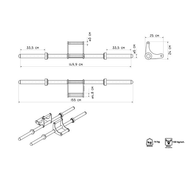 Olympijská hřídel MARBO MF-G006 FARMERS WALK BARS takzvané farmářské kufry jsou vyrobené z kvalitní oceli na které můžete naložit až 150 kg. Uchopovací část každého sloupce je přesně vroubkovaná. Nyní již nemusíte mít strach, že Vám hřídel vyklouzne z ruky při tréninku nebo soutěži.