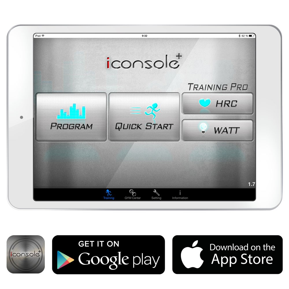 Propojení recumbentu s aplikací iConsole+ patří mezi hlavní přednost. Skrz aplikaci můžete nastavovat programy, ukládat Vaše naměřené hodnoty, sdílet na sociálních sítích či kontrolovat aktuální informace při běhu (srdeční tep, rychlost, vzdálenost, aj.)