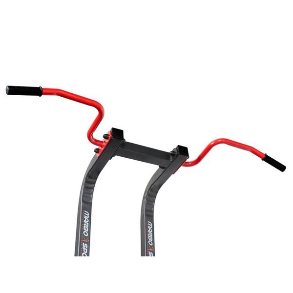 Bradla s hrazdou MARBO MS-U110. Produkt ze série SEMI-PRO určený pouze pro rekreační využití, avšak toto označení nijak neznevažuje toto robustní zařízení s profilem 50x50mm. Kvalitní provedení zaručuje plnou stabilitu, která je tolik potřebná. Bradla a hrazda jsou skvělou multifunkční kombinací, díky které zvládnete trénink více svalových partií pomocí vlastní váhy. Série HOME obdržela Top Security Certificate - udělován za bezpečnost a dodržování platných norem ze strany Evropské kvality.