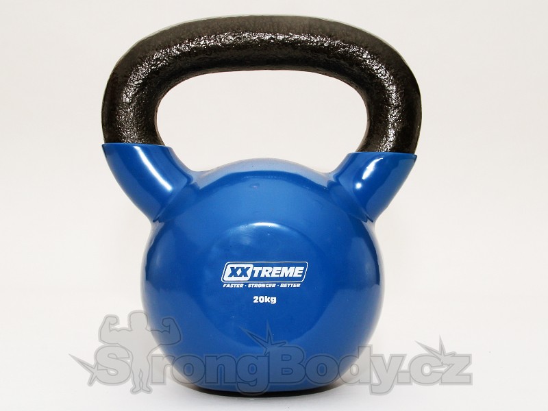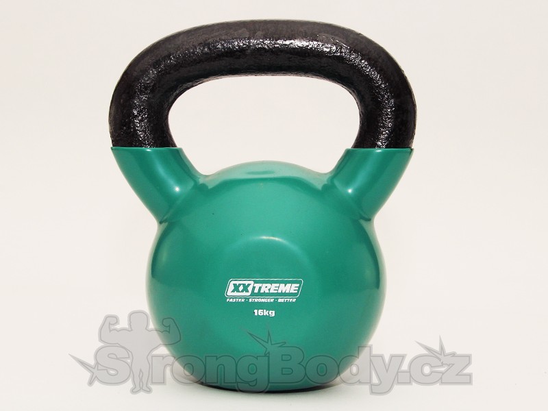 Kettlebelly od XXTREME jsou pro rychlejší rozlišitelnost kryty barevným PVC a dodávány ve vahách 4 - 32 kg.